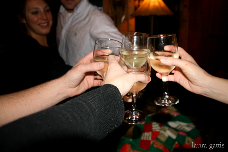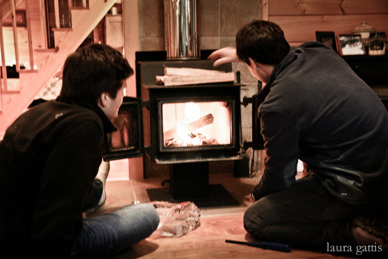 The cabin was perfectly tucked down a short jaunt through the woods, overlooking a boisterous stream below. The boys quickly turned their fascinations to starting the fire, bellowing the flames with their mouths in true boy scout form. We nestled down into the couches to relax and wait for the arrival of Lindsay and Tim, who also were graced with a given name, the Berms. When you refer to your friends by their last names, it seems only natural to combine them with their married names for one sweet convergence.