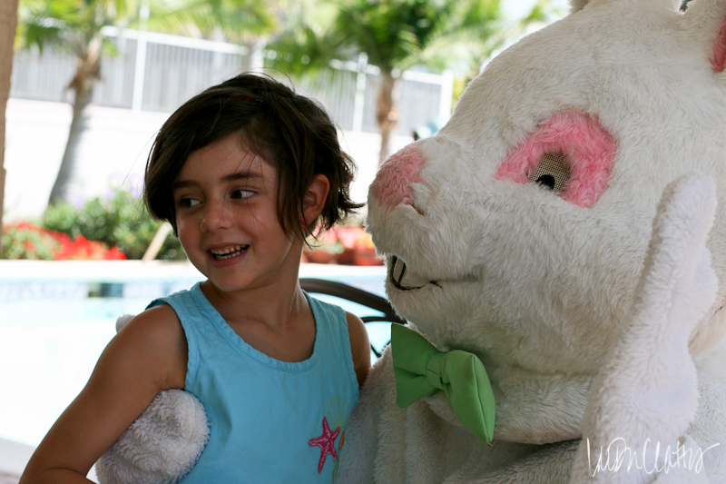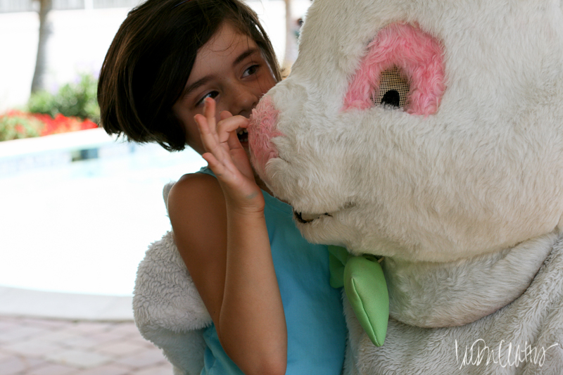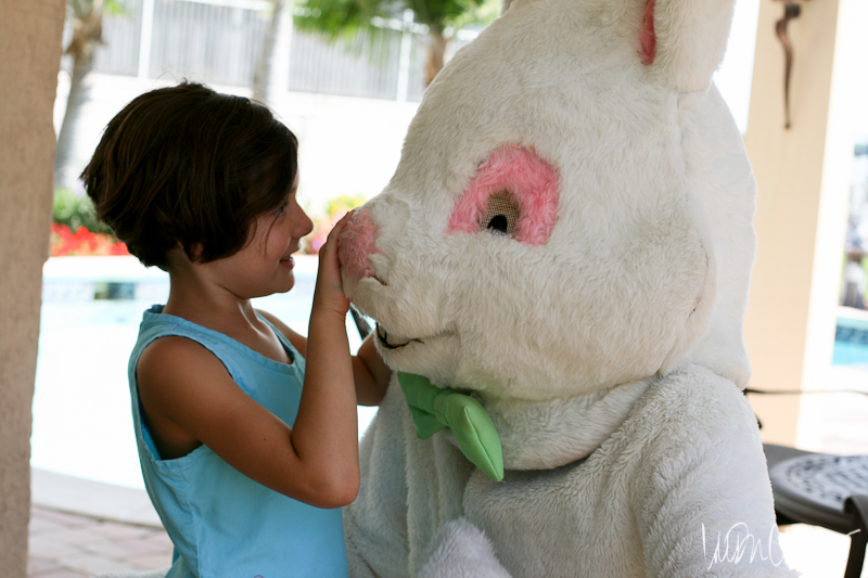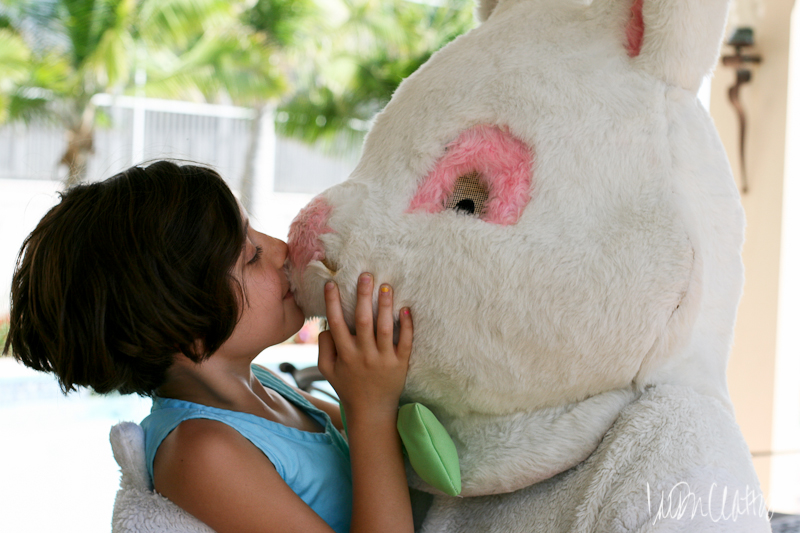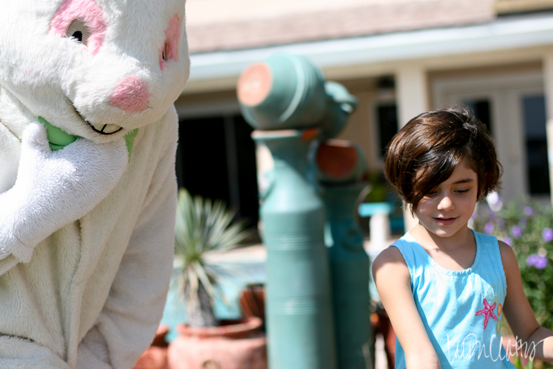But then it was time for him to leave. And this is where the magic happened. He made his exit around the side of the house, barreling into chlorine containers and pool equipment from the limited view through painted mesh eyes. Aubrey jumped up and ran over to see if the bunny was okay. By then he was gone, gate closed and locked behind him. With bright eyes and a glimpse of amazement she turned to us and said “He disappeared!” Even if it was just for a split second, she believed.