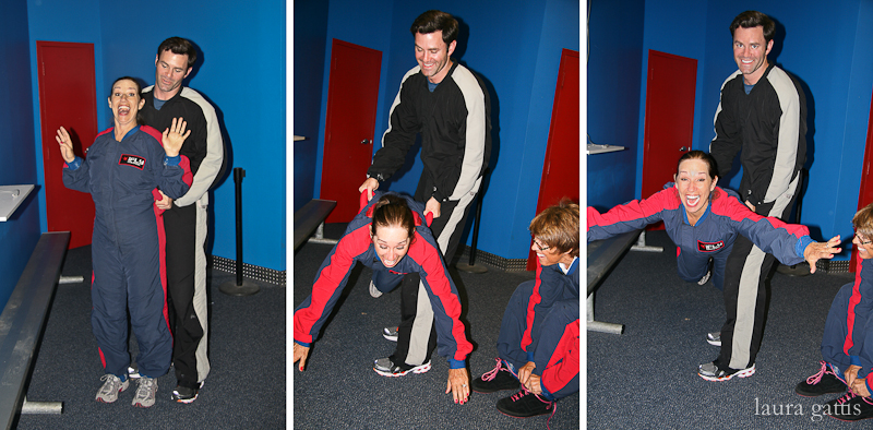 We piled into the air-sealed chamber and she waited to sit, apparently calculating the positioning order in her favor. Then, with overly intent eyes and level words she turns to me and says “I need you guys to go first, then, give me the OK to let me know if you think I can do this.” Pfffthh. Whatever woman, we drove all the way over to Orlando for this, you’re doin’ it! Just to be sure, she got a little practice in before the main event.